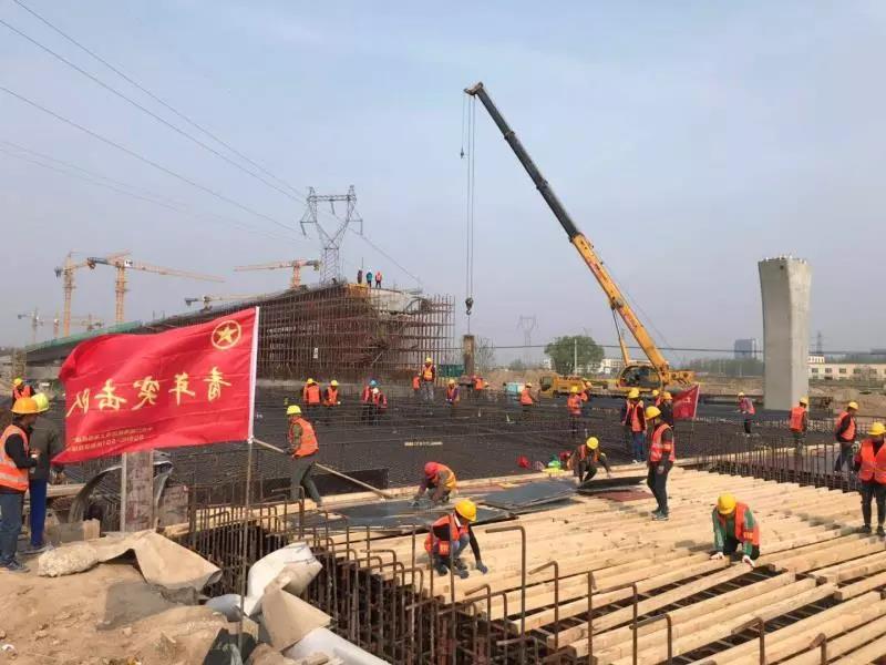 4月30日,宿迁市上海路(高铁站连接线)改造工程高架桥主线全部现浇箱梁节点工期提前5天完成;