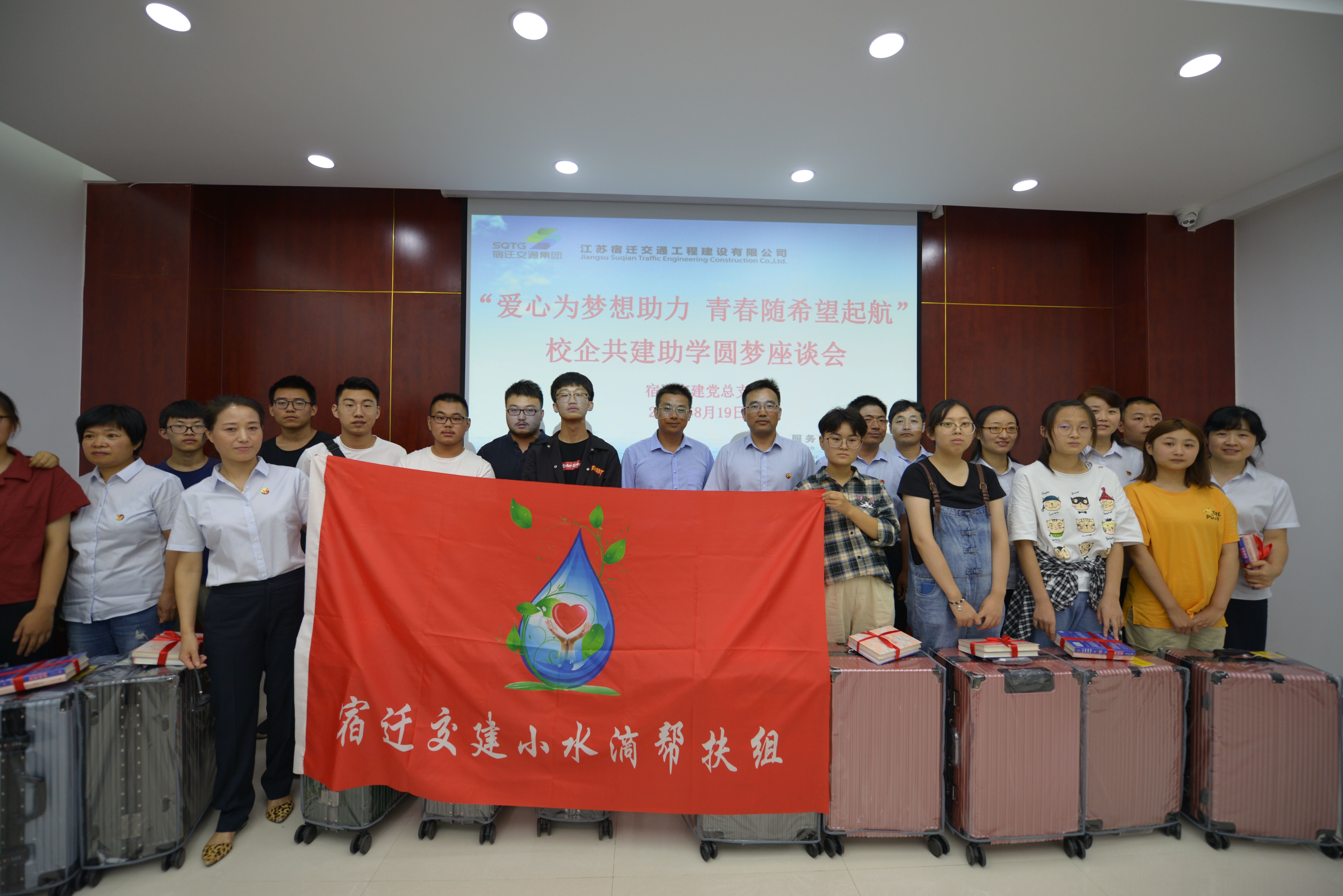 来到高铁公司项目施工现场,热火朝天的大干场面、烈日下施工人员忙碌的身影给同学们留下了难忘的印象。随后,召开了分享交流会,学生代表表达了对宿迁交建的感激之情,并表示将在今后的大学生活中奋发有为、不负所望。 公司爱心帮扶小组表示,公司将持续开展校企共建助学活动,帮扶更多的贫困学生,彰显国企的爱心与担当。最后,公司领导为学生们发放旅行箱、书籍等爱心礼物,并一一寄语,希望他们带着大家的祝福将这份爱心继续传递。 图/文:宿迁交建 程丽荣