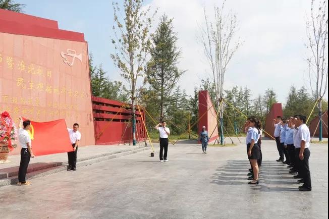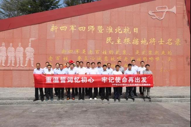 伴随着嘹亮的军歌,大家踏上了这片被誉为“苏皖红土地,淮北小延安”的红色土地。在新四军四师暨淮北抗日民主根据地将士名录墙前,全体党员列队肃立,鞠躬默哀,向革命先辈敬献花篮。随后,党员同志们面对党旗,重温入党誓词,用铮铮誓言诠释自己不忘初心,牢记使命的坚定信念。