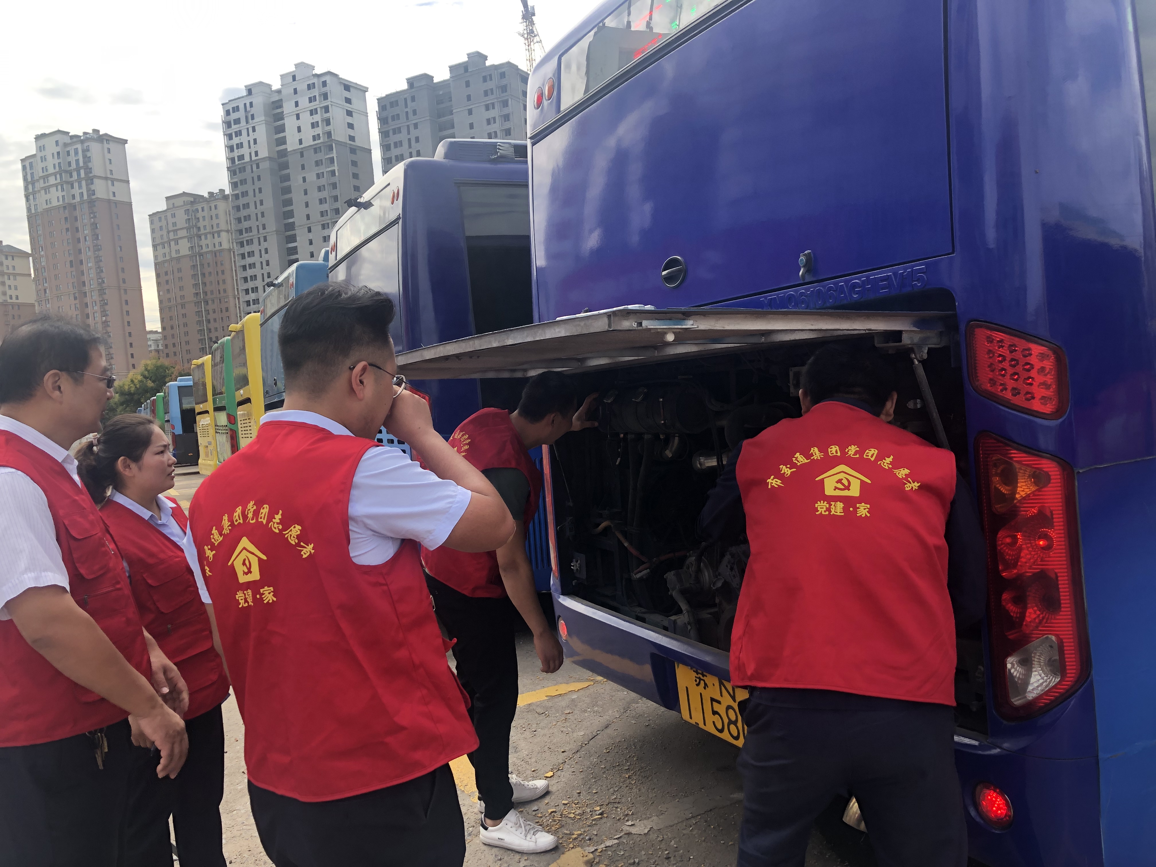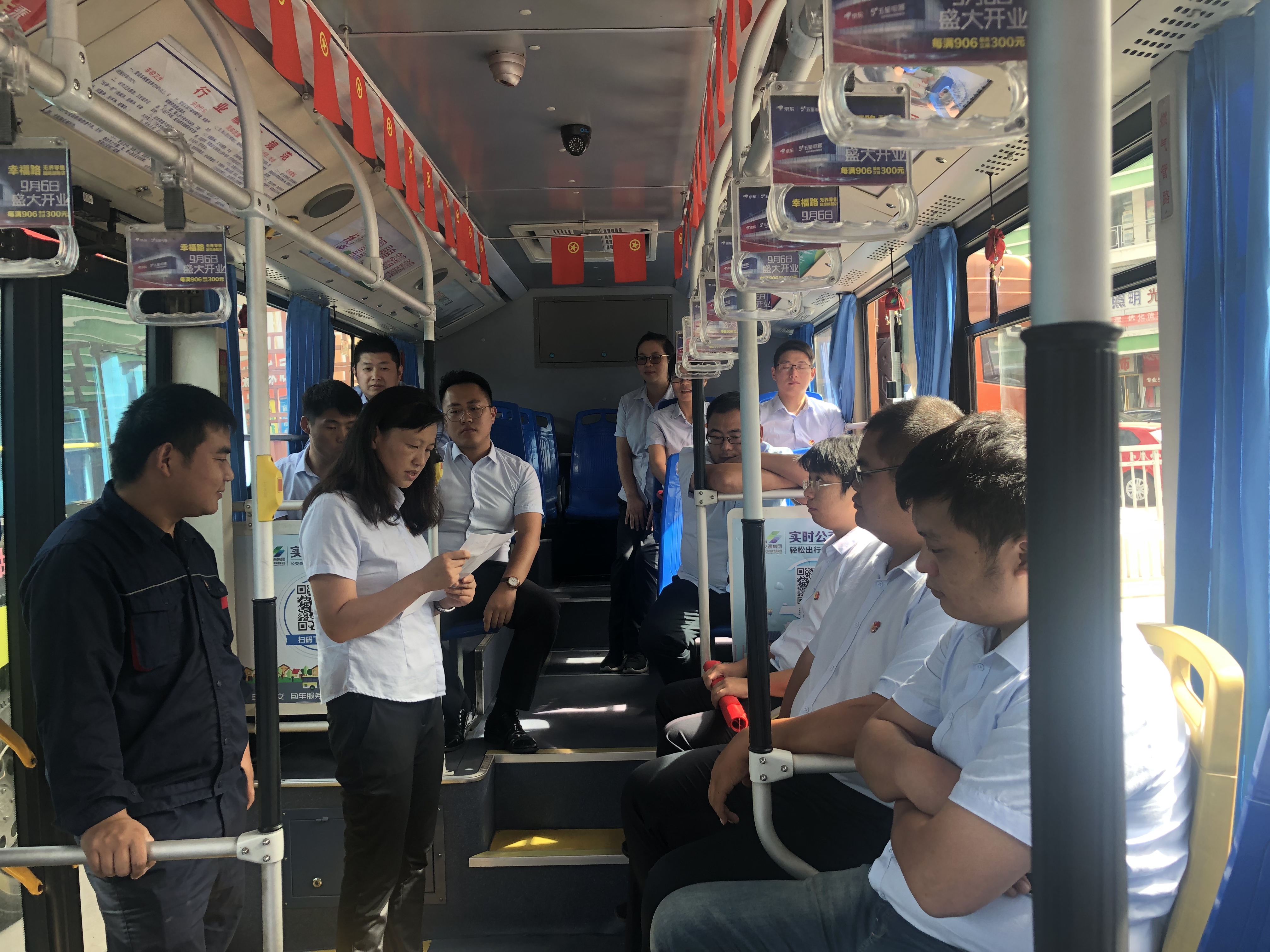 活动中,支部党员首先走进车厢带动一线驾驶员学习集团党委“不忘初心、牢记使命”主题教育动员会议精神,并在公交车厢进行重读入党志愿书活动,重温入党承诺。随后,支部党员两人一组组成志愿队,在310路共青团示范线上进行跟车文明劝导,主动搀扶老弱病残孕上下车,积极引导乘车市民文明排队、有序乘车。跟车的党员志愿者还带领310路驾驶员沿线检查站牌标识内容有无缺失并清理沿线站台内小广告,为广大市民创造良好的公交出行环境。另外一组由安全技术管理部、营运管理部、修理公司组成的突击小分队对站点车辆安全状况进行排查,以实际行动,防风险、除隐患、迎大庆。