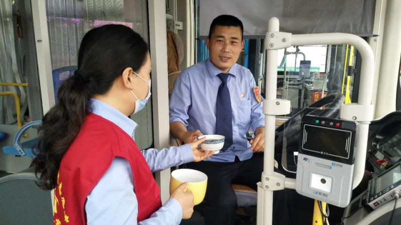 在日常营运中,调度站工作人员会对公交驾驶员进行相应的安全叮嘱,每天出车前,驾驶员都会由站务员测量血压、酒精、体温,确定一切正常后再上线运营。