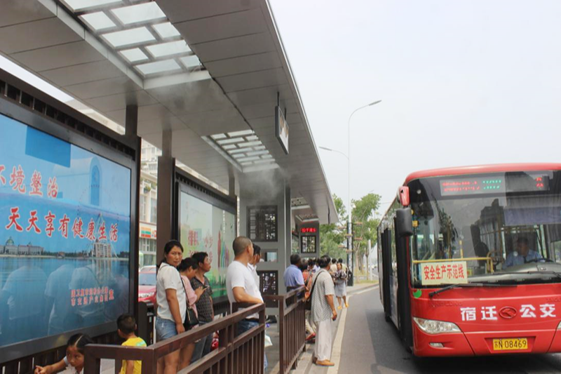 此外,公交公司在市区多处候车亭安装了喷雾降温装置。该装置能在功能区范围内使环境温度下降5°C到8°C,在净化空气的同时祛除人们身上的暑气,让市民告别“候车热、候车晒”,提升乘坐公交车的幸福感。
