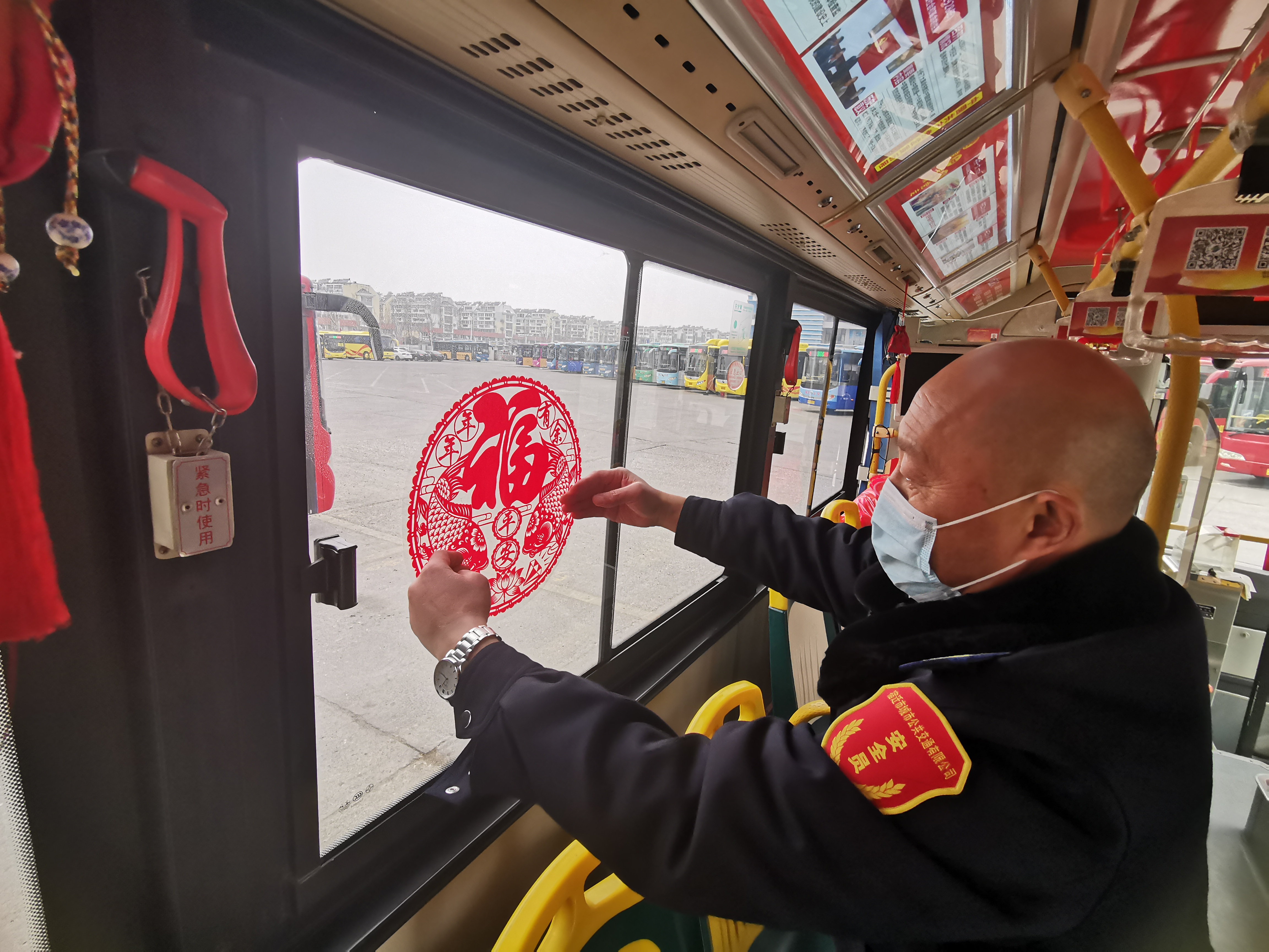 304路的车队长李春祥喜气洋洋地说:“装扮车厢、营造过节的喜庆气氛是大伙想出来的,灯笼和窗花的尺寸,也是司机们自己量好的。”