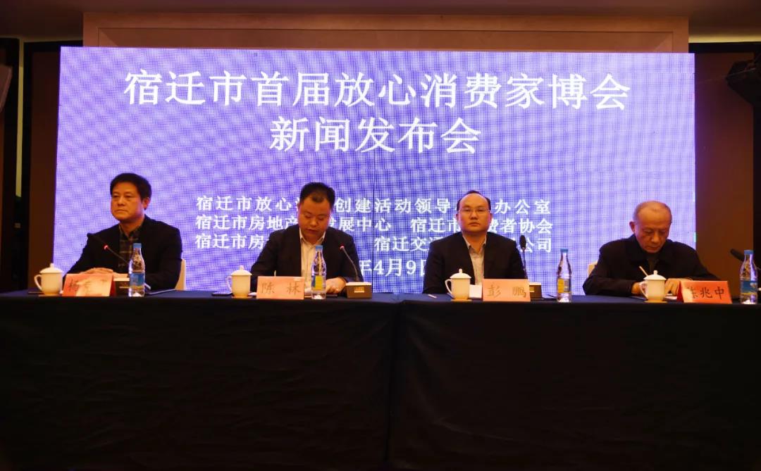 4月9日下午,宿迁市放心消费创建办、宿迁市房地产业发展中心、宿迁市消费者协会、宿迁市房地产业协会和宿迁交通传媒有限公司联合召开新闻发布会,共同启动宿迁市首届放心消费家博会。