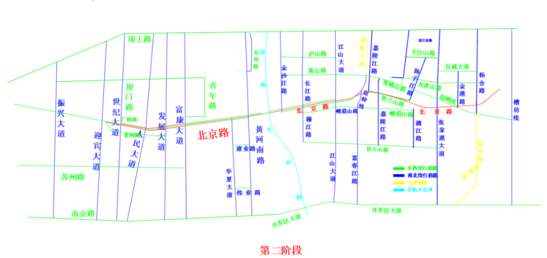 注意:所有横穿北京路交叉口均保持南北正常通行