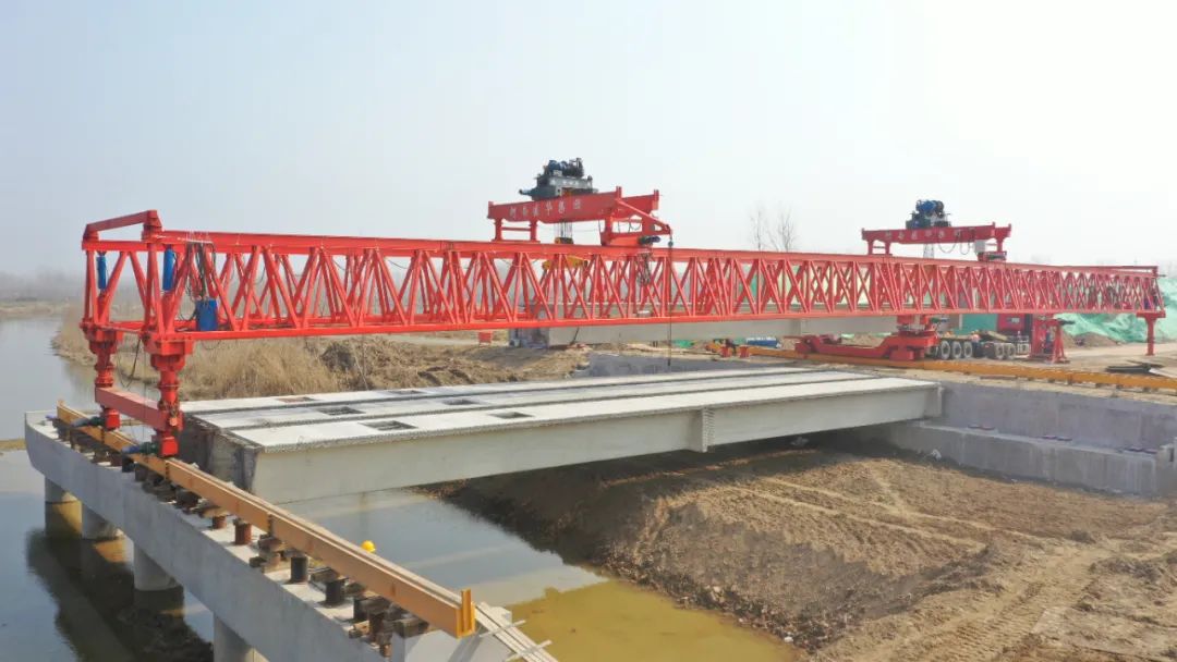 【宿迁交建】宿迁交建成功架设皂河龙运大道提升改造工程首片预制箱梁
