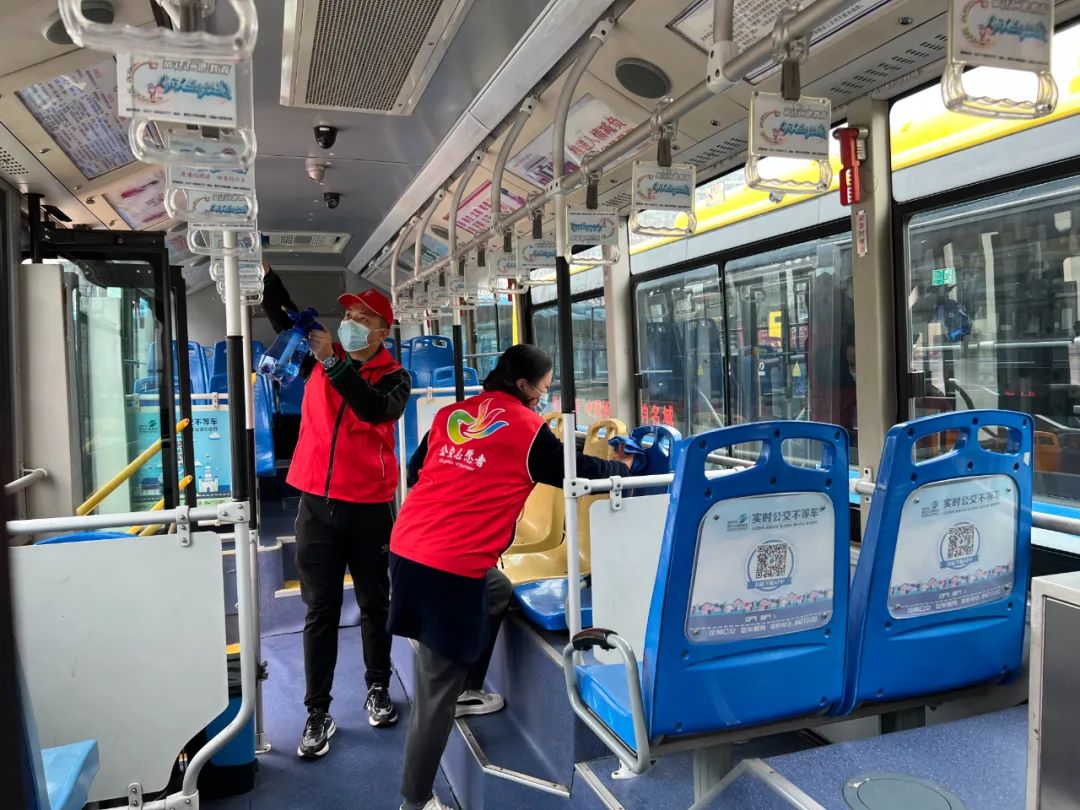 公交公司各场站工作人员,严格落实落细疫情防控举措,对公交车厢进行全面消毒,对车载设施设备等重点部位进行深度消杀,及时清理场站卫生,做到不留死角、不漏盲区、不存隐患,确保车辆状况良好、场站卫生整洁。